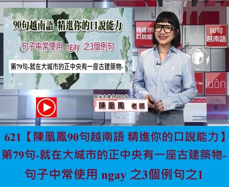 621【陳凰鳳90句越南語 精進你的口說能力】第79句-就在大城市的正中央有一座古建築物-句子中常使用 ngay 之3個例句之1